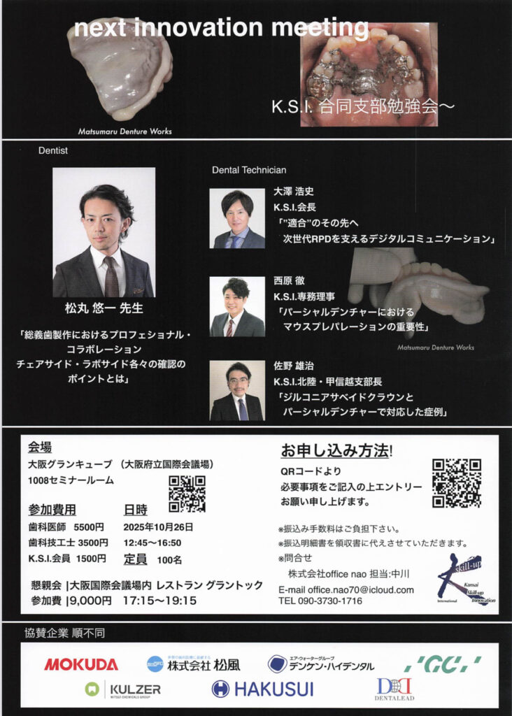 最後に、今回講師をしていただいた大澤浩史さんが、来月、大阪で行われるK.S.I.合同支部勉強会の講師をされるそうなので、そちらの宣伝をさせていただいて、この投稿の締めくくりとさせていただきます。歯科関係者の方で、ご興味がある方はぜひエントリーしてみてください!