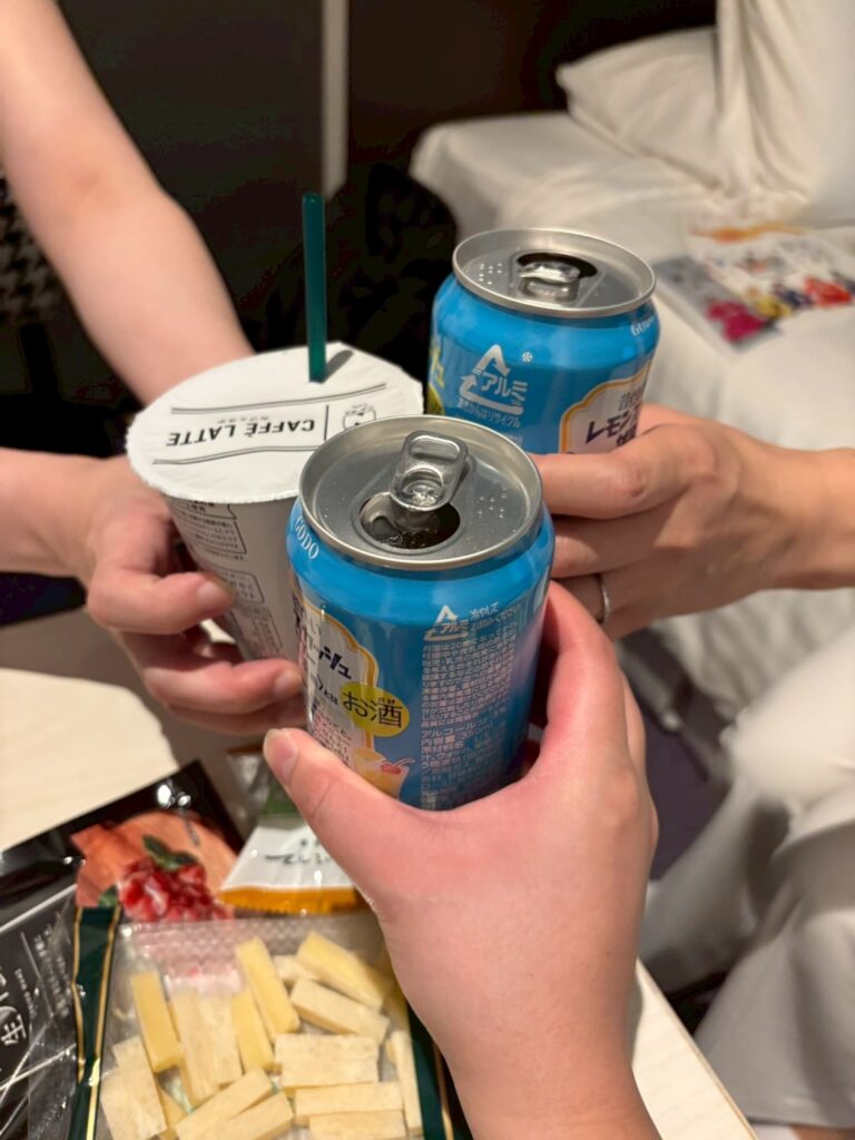 グレードの高いホテルなのでめちゃくちゃオシャレで、サービスも充実!!食べ物飲み物お酒まで、全て無料サービス!!各々食べたい物を貰い…とりあえずのお疲れ様の乾杯をしました🥂(笑)