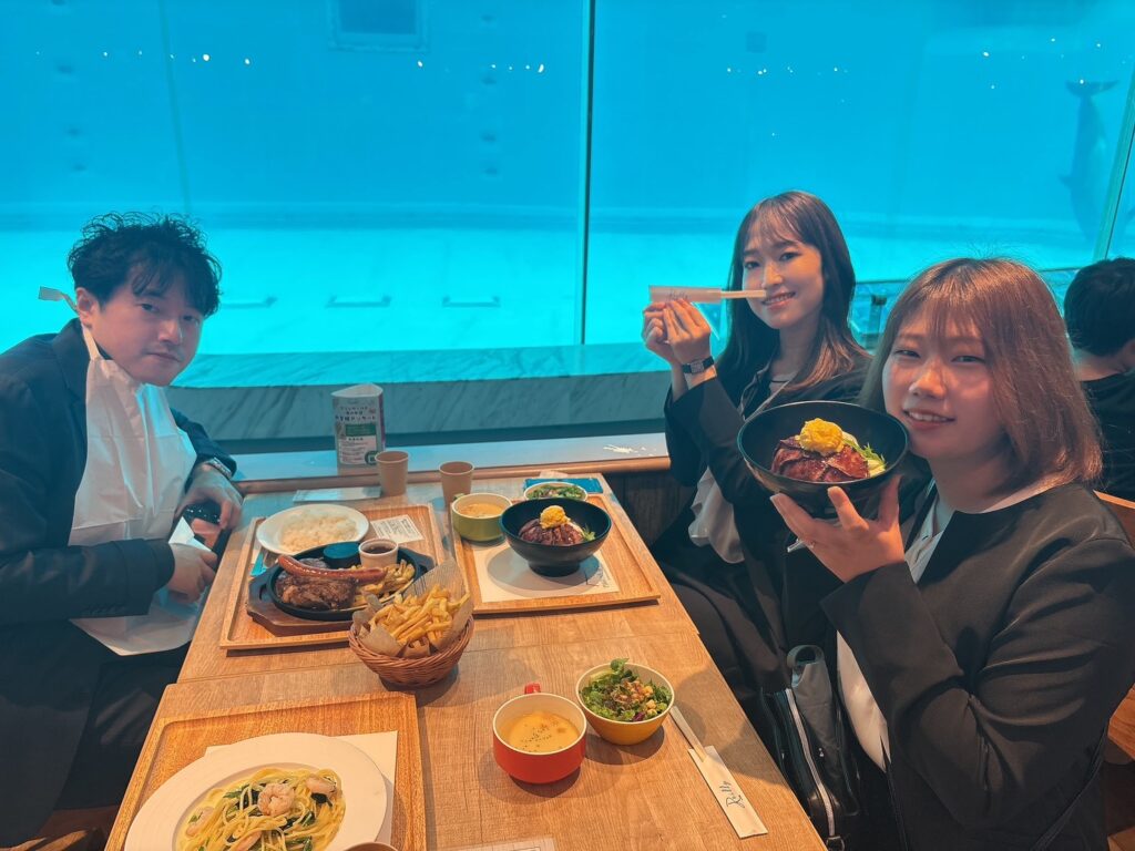 イルカの水槽の横にあったので、食事しながらイルカが泳いでる姿を見ることができました🐬