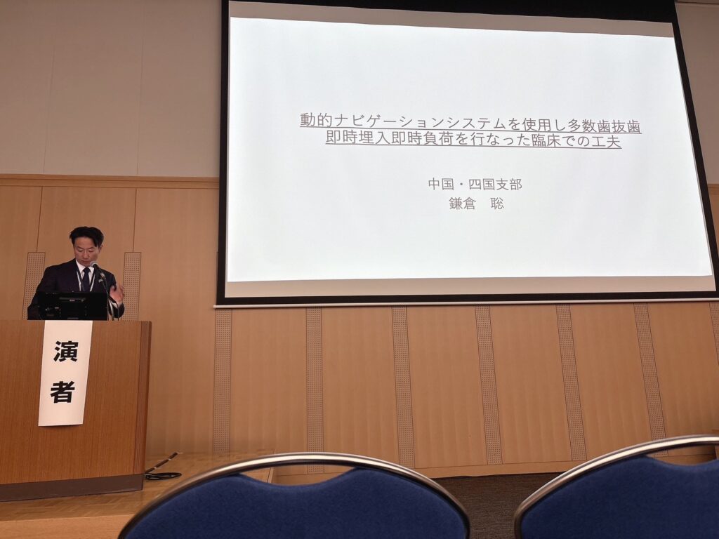 ダイナミックナビゲーションシステムを使用した多数歯抜歯即時埋入即時負荷の臨床での工夫について講演をされていました。
