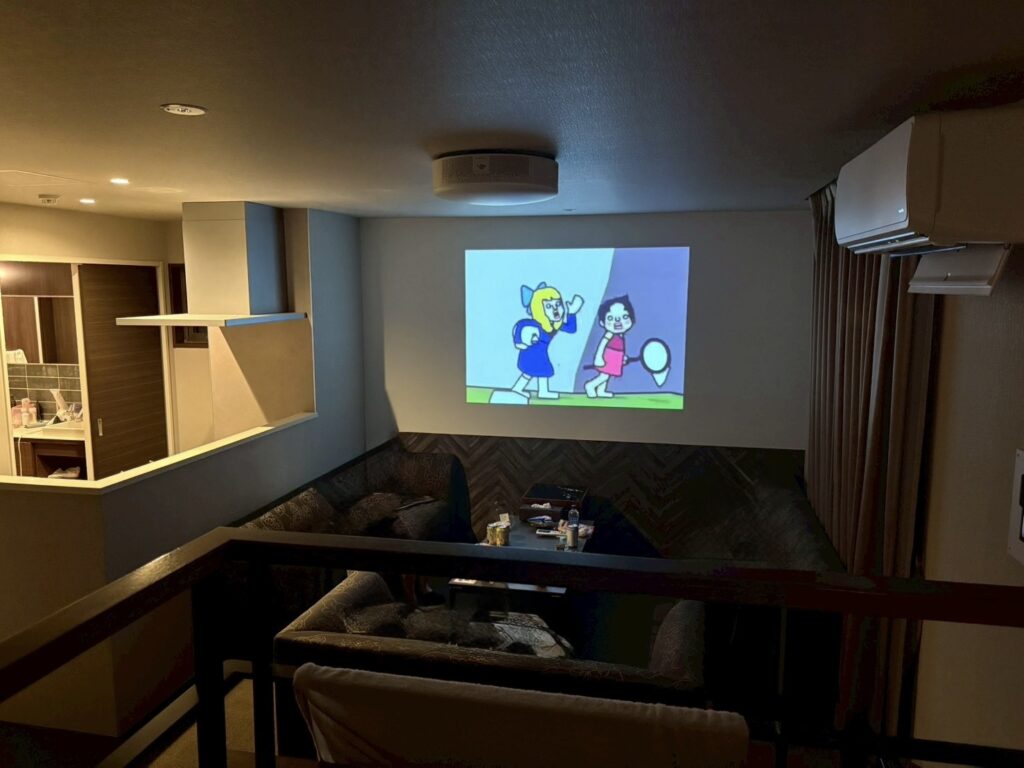 実際に部屋に入るととても広くて、リビングにはプロジェクターがありました✨