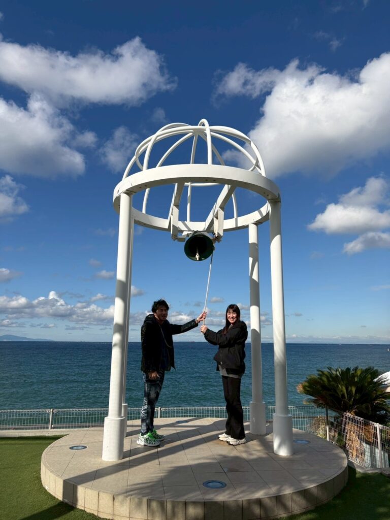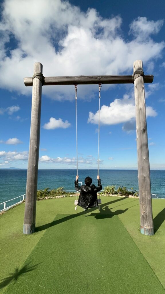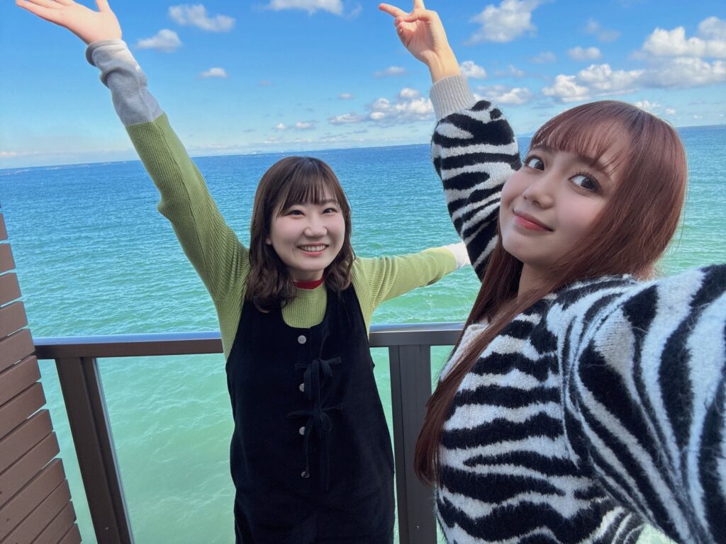 個室にはバルコニーが付いていて外に出ると海が目の前に広がり、とてもきれいな景色にまたまた写真撮影タイムです📸