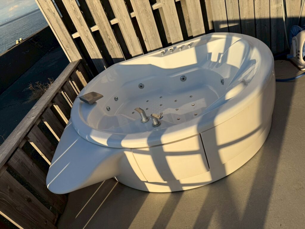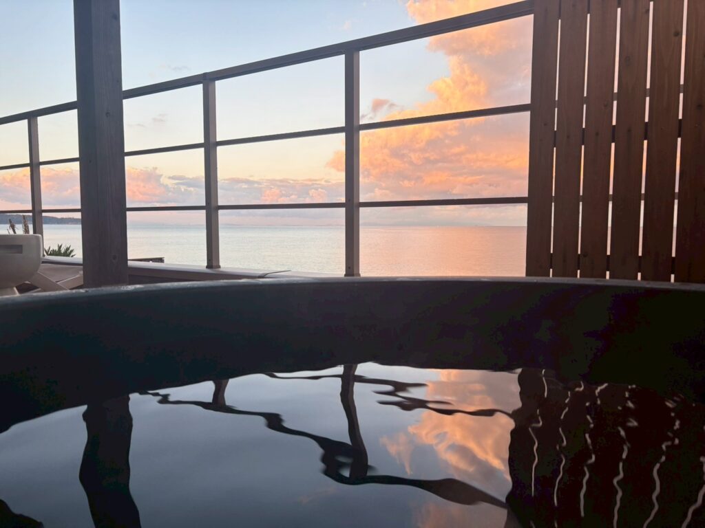 ジャグジーやサウナまでそれぞれの棟に備えられていて、夕日を眺めてくつろげる椅子も最高!!