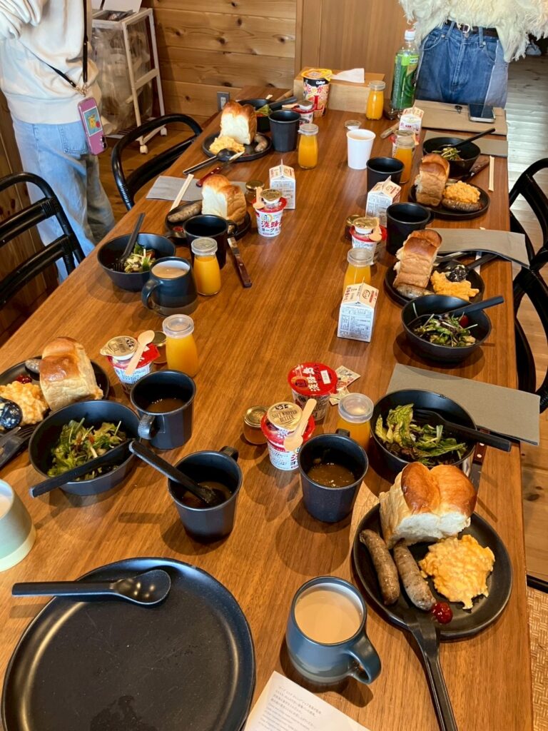 朝食はパンやサラダやソーセージ、スクランブルエッグやスープなどお皿に取り分けていただきました😋
