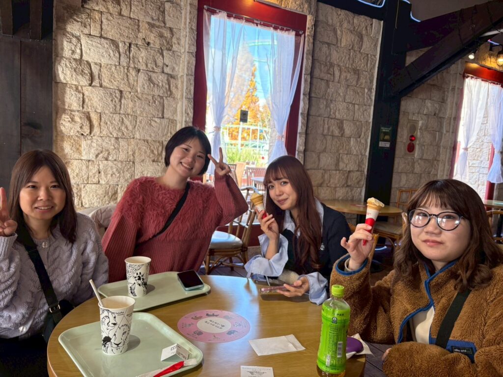 ジェットコースターや乗り物に乗る人もいればカフェでコーヒーを飲んだりアイスを食べながらゆっくり過ごす人、