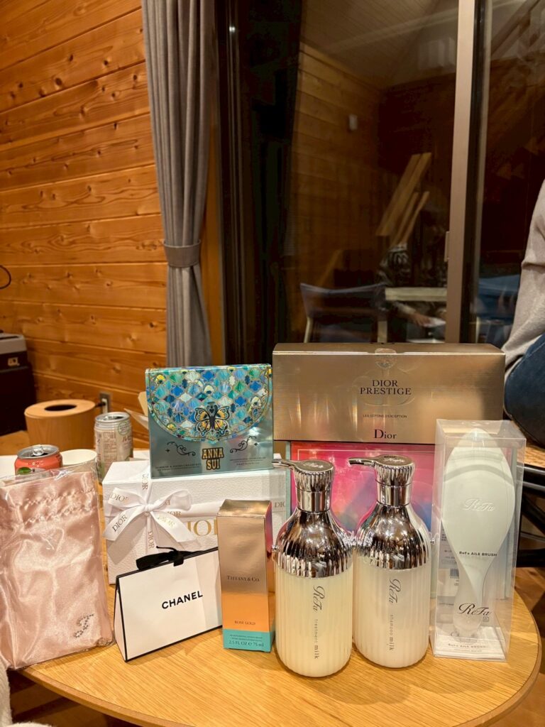 他にもANNA SUIのハンドクリームとミラー、CHANELのリップバーム、ReFaのシャンプー・トリートメントやReFaのヘアブラシ、
