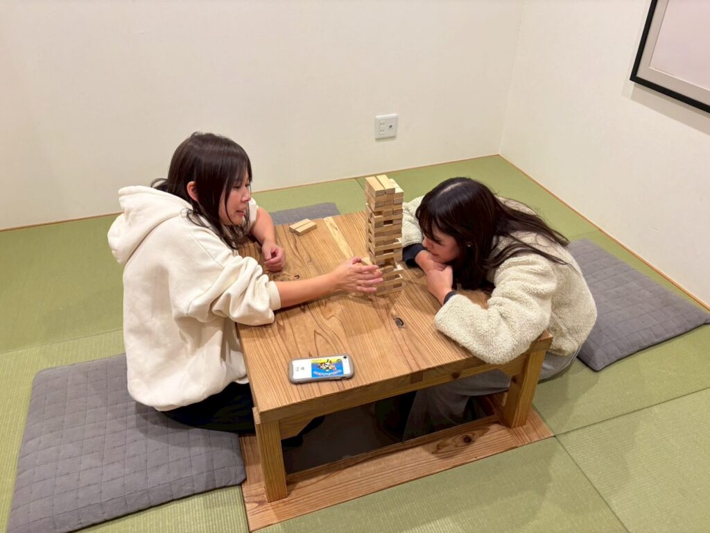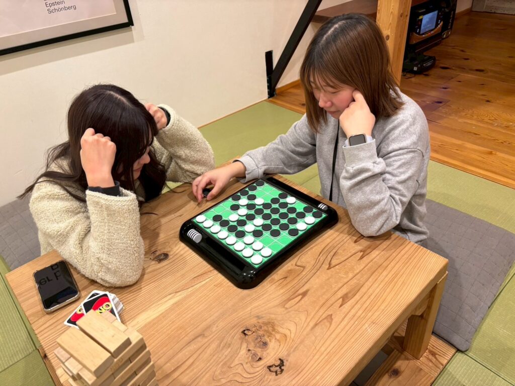 ひとしきり遊んだ後は、それぞれ分かれてゆっくり休む人もいればコテージにあったジェンガやオセロで遊んだり、
