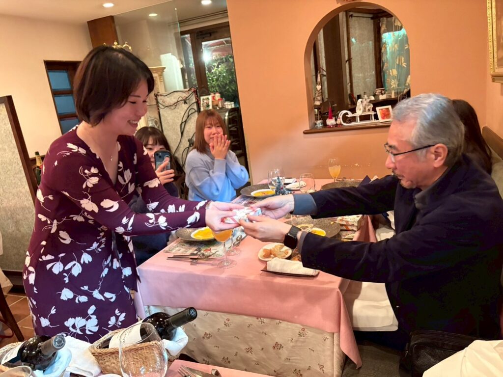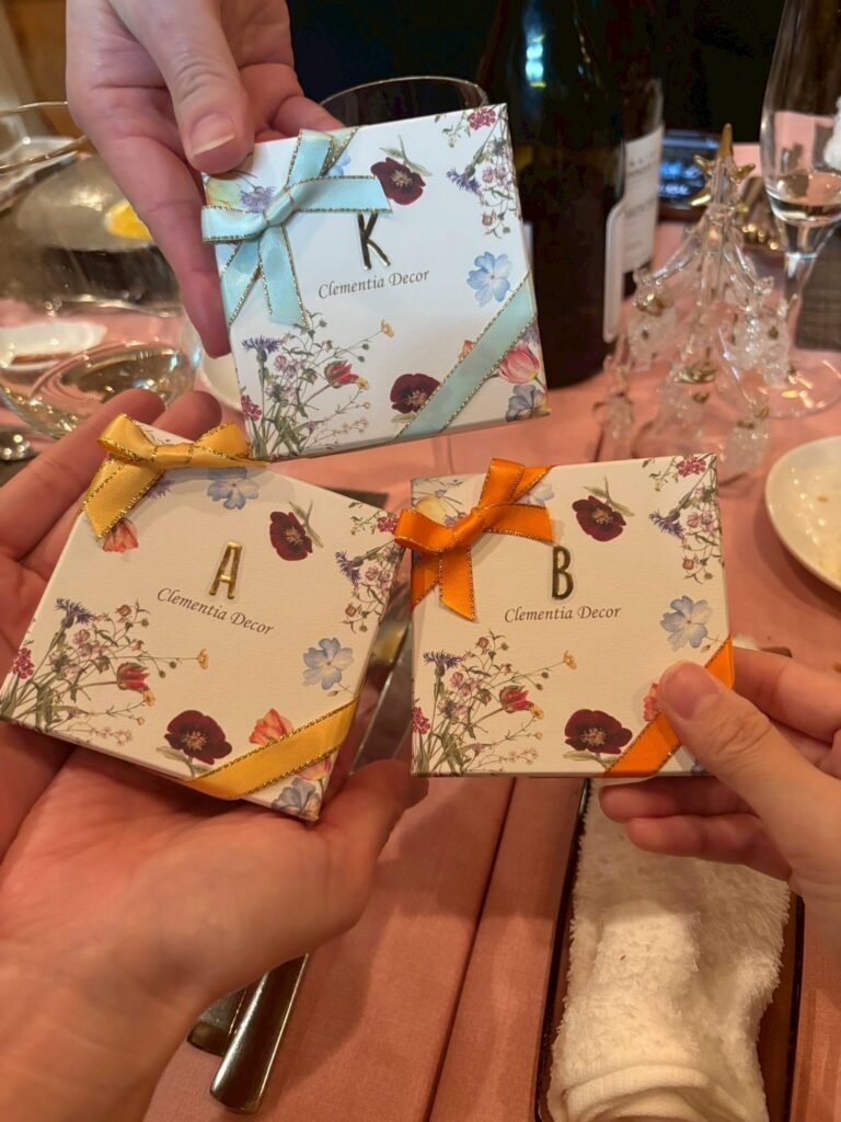 そして、院長のご両親が今年もスタッフ全員にプレゼントを用意してくださっていて、プレゼントの箱にアルファベットが貼ってあって、どれになるかは貰ってからのお楽しみで、、、。