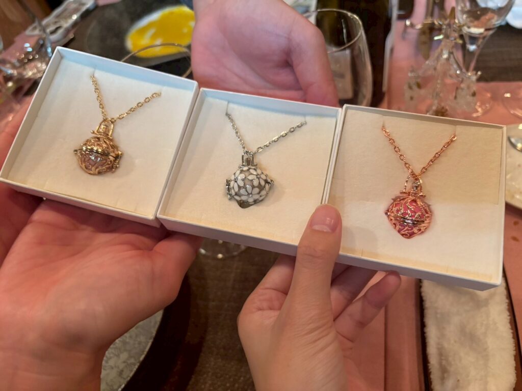 トップの中には綿の球が入っていて、それに自分の好きな香りを含ませて楽しむタイプのものと、写真を入れる事ができるタイプのものがありました。