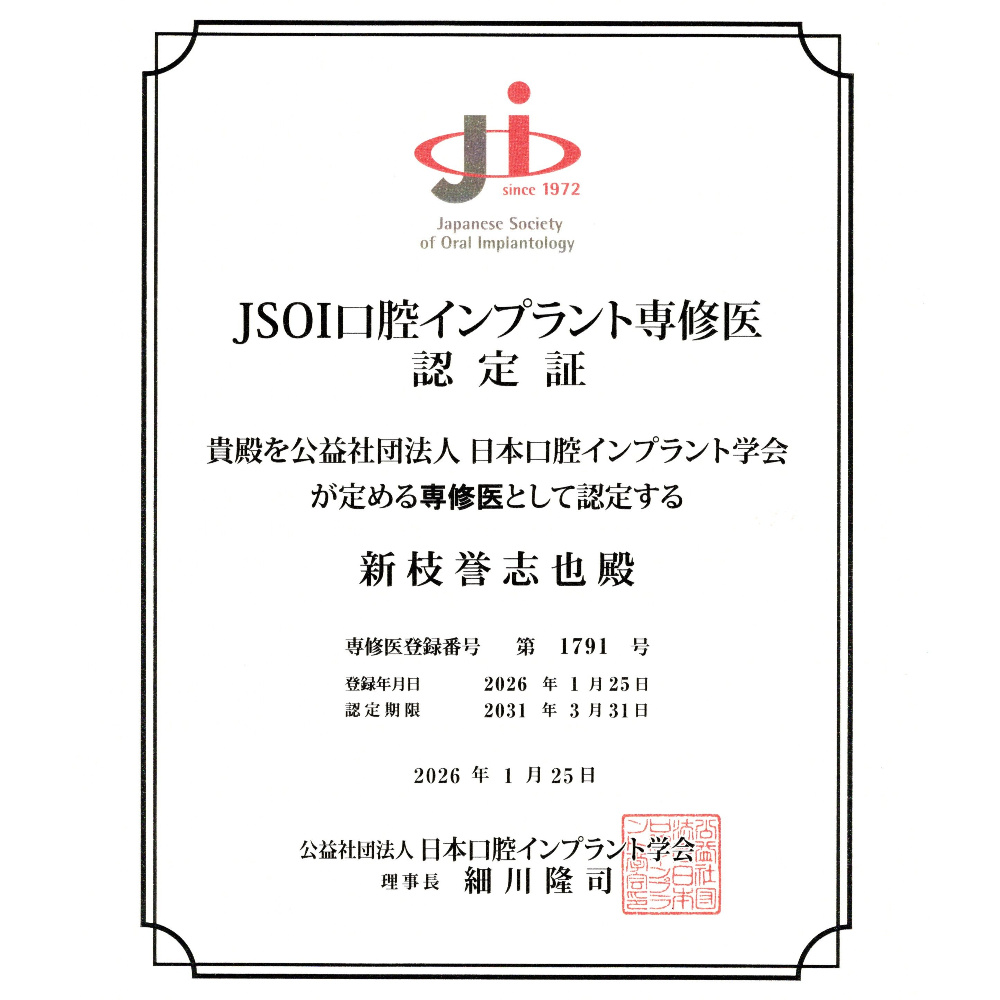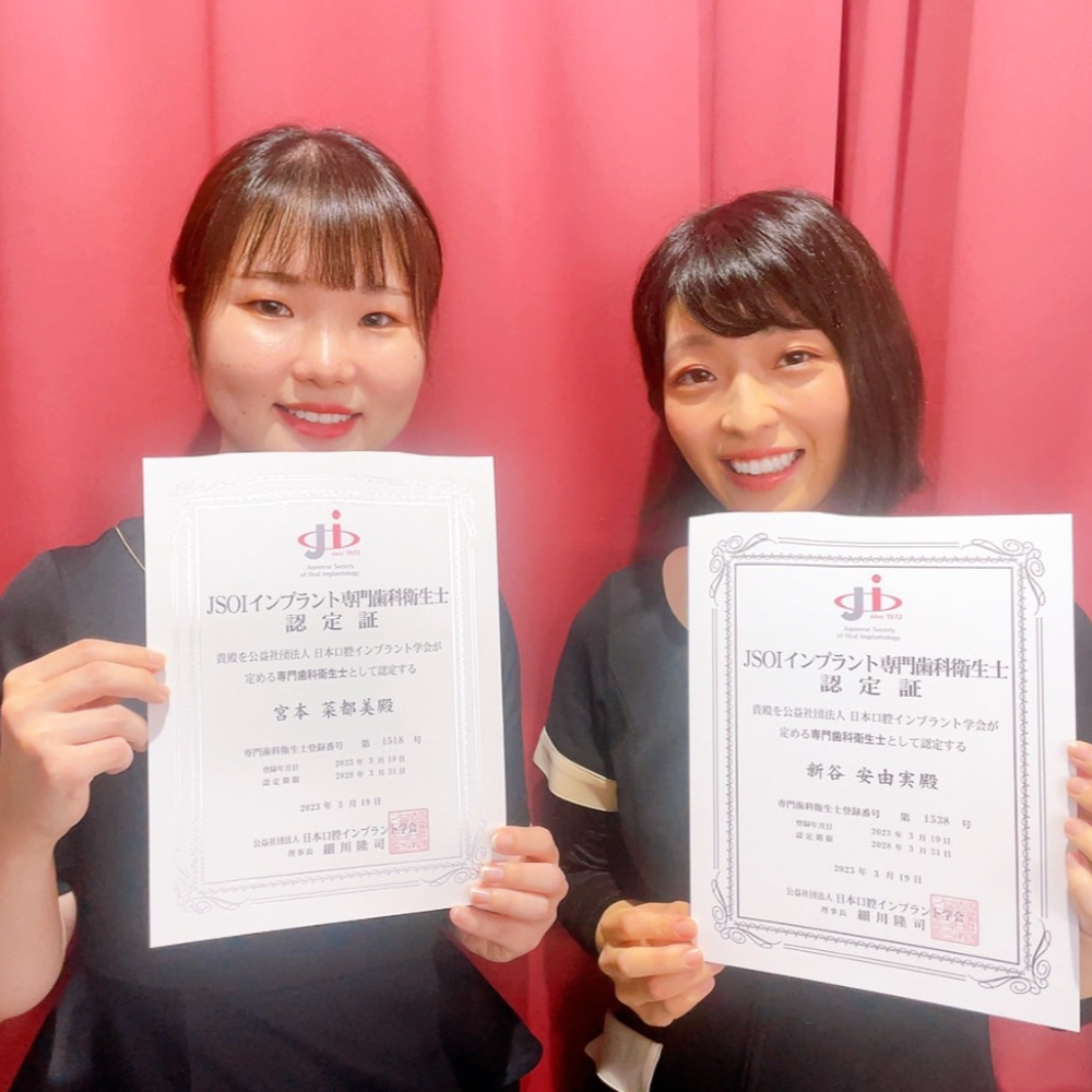 インプラントの治療やメインテナンスに精通し経験と勉強を積み重ねた衛生士であることを日本最大の歯科学会「日本口腔インプラント学会」から認定していただくことで得られる資格です。