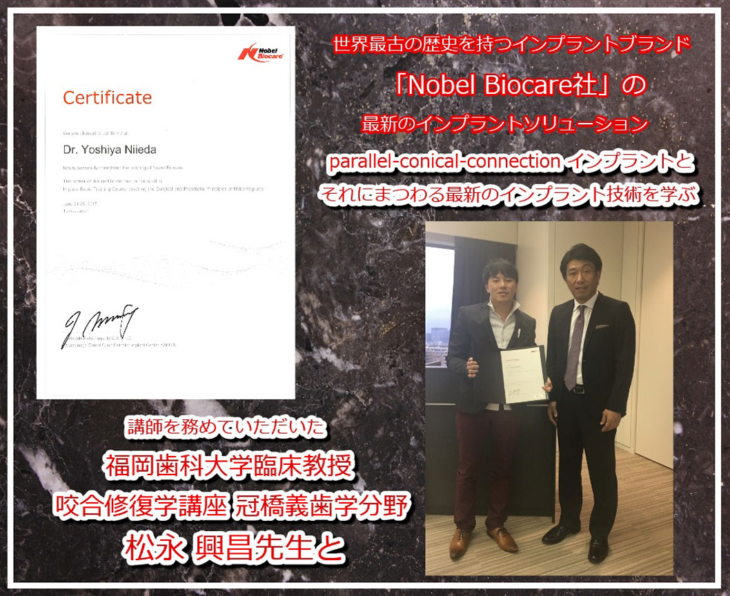 世界最古にして現在も世界三大ブランドの一角である「ノーベルバイオケア社」より、その知識、設備、技術を高く評価され、「プラチナメンバー」に選出されました。香川県で2名だけの栄誉です。