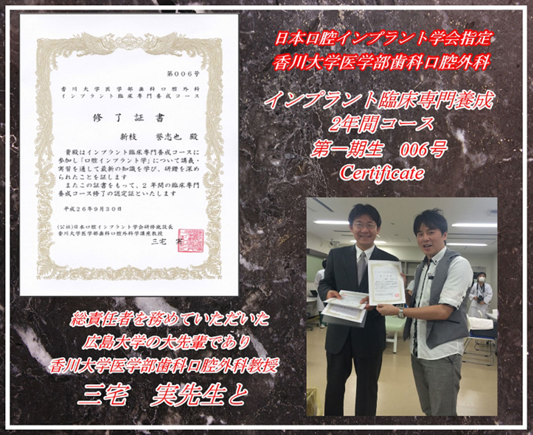 香川大学インプラント臨床専門育成コース1期生 修了番号006号